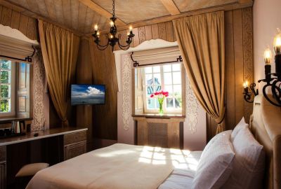 Отель Вилла Тоскана был построен на месте старого немецкого особняка в центральном районе города Калининграда, долгих семь лет над внешним видом и интерьерами номеров трудились люди, посвятившие частичку своей души и часть своей жизни этому проекту. Дом украсил собою центральный район города в котором и до войны были расположены самые шикарные виллы состоятельных и известных жителей Кенигсберга. Своей запоминающейся входной дверью цвета лазурного моря отель выходит на тихую улицу имени Пушкина, а ресторан отеля заканчивается террасой с видом на центральный парк города, деревья которого как зеленой стеной закрывают этот уголок тишины и душевного спокойствия. Гости отеля будут окружены вниманием персонала и стенами, на которых нанесены пейзажи Италии, а день проведенный на Вилле Тоскана начнется с пения птиц и пройдет в неспешной суете под шум фонтана.