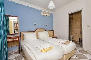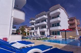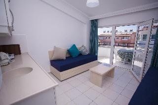 Newly renovated apart hotel with cozy atmosphere. Small garden with nice pool area and sun beds. Restaurant with a la carte restaurant and bar. Spa with Hamam (Turkish bath), sauna and gym. Small waterslide in children pool. Heated children pool (minimum 25 degrees). Playground. ApartmentsNice apartments with balcony. Extra bed is bed sofa. Refrigerator, cooking plate, kettle, toaster and simple kitchen equipment. Most apartments have dinner table at balcony. Shower and WC. Central area for shopping abilities and local market close by on saturdays. Easy transportation for close touristic attraction areas.