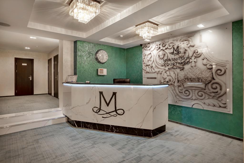 Комфорт в сочетании с эксклюзивным дизайном, индивидуальный подход к каждому гостю — вот основные составляющие Вашего пребывания в этом отеле. В самом сердце прекрасной столицы на одной из главных дорог ведущих к Кремлю расположился новый Бутик Отель «Myasnitsky courtyard». Улица Мясницкая стала известна в XVIII веке, на ней селились дворяне и новая аристократия и ездили цари… Здание отеля — памятник архитектуры, расположено в тихом уютном, сохранившем непередаваемую атмосферу старой Москвы, районе. Благодаря удобному расположению отеля, Вы будете находится в шаговой близости от делового и культурно-исторического сердца России, и одновременно в обстановке покоя и исключительности.Бутик Отель «Myasnitsky courtyard» - это уникальное сочетание эксклюзивных интерьеров и современного экологического дизайна, идеальное расположение в центре столицы. Отель «Myasnitsky courtyard» соответствует всем современным тенденциям и это прослеживается в стиле и дизайне отеляОтелю присвоены четыре звезды. В отеле 15 номеров, в которых есть всё необходимое для комфортного проживания. К оформлению каждого номера подошли с душой и сделали их максимально комфортными и уютными для Вас. Все номера оборудованы кондиционером, сейфом, спутниковым телевидением, телефоном, столом и креслами. Все номера имеют собственные ванные комнаты. В наличии полотенца, халаты, тапочки, банные принадлежности и фен. Вся территория отеля оснащена бесплатным Wi-Fi. В течение дня каждый гость может отдохнуть в холле за чашечкой ароматного кофе или чая.Для Вашей безопасности в холле отеля ведётся круглосуточное видеонаблюдение.