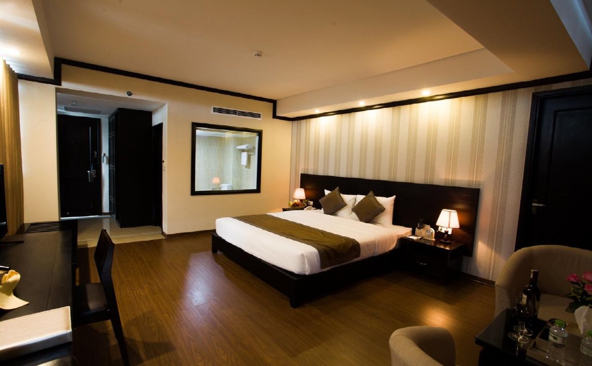 Отель Top расположен в Ханое. Храм литературы и мавзолей Хо Ши Мина – известные достопримечательности. Путешественникам, желающим сделать покупки, стоит посетить Lotte Center Hanoi и рынок Донг Суан. Комната Все 80 номеров оснащены продуманными деталями, такими как халаты и тапочки, а также бесплатным беспроводным доступом в Интернет и ЖК-телевизорами с кабельными каналами. К услугам гостей также круглосуточное обслуживание номеров, мини-бары и электрические чайники. Удобства В отеле есть ресторан, открытый бассейн и оздоровительный клуб. Также предоставляются бесплатный Wi-Fi в зонах общественного пользования и бесплатная самостоятельная парковка. Другие удобства включают бар/гостиную, круглосуточное обслуживание номеров и услуги консьержа.