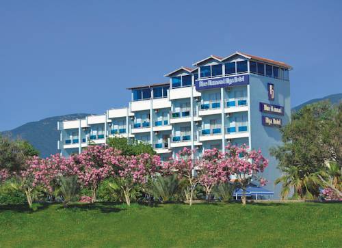 The hotel is located in the popular holiday region of Alanya, only 50 m away from the private sandy beach. The centre of Alanya with its shops, restaurants and bars is 2.5 km away, Antalya International Airport is at 125 km. The hotel features 91 rooms, 24-hours reception, concierge service, currency exchange, free WIFI, restaurant, 4 bars, fitness centre, spa and wellness, sports facilities, outdoor swimming pool, mini market, laundry service and free on-site parking. Facilities for disabled guests.