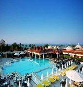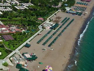This club resort is situated right by a beautiful beach, around a 5-minute drive from the centre of Side, Manavgat, and from the bus station.The air-conditioned beach hotel offers 300 rooms in total and welcomes guests in a lobby with 24-hour reception and check-out services, a hotel safe, currency exchange facilities, and a cloakroom. Further facilities include a hairdressing salon, auditorium, children's playground, kids' club, bar, restaurant and disco. Guests may also take advantage of the conference facilities, wireless Internet access, a laundry service, car park and bicycle hire service.All rooms are equipped with an en suite bathroom with shower, bathtub, hairdryer and make-up mirror, a double bed and a private balcony. Other in-room amenities include a TV, telephone, safe, mini fridge and individually regulated air conditioning and heating.The holiday village has a night club offering great entertainment and music. There is an outdoor swimming pool with children's swimming area, a poolside snack bar and a sun terrace with sun loungers and parasols laid out ready for use. Guests may also join an aqua fit or aerobics session, work out in the gym, relax in the sauna, or choose from a selection of massages and spa treatments (fees apply for both). Water sports offered for a fee include waterskiing, jet skiing, surfing, windsurfing, banana boating and catamaran boating. Guests may also enjoy a game of tennis (fees apply), table tennis, pool/snooker (fees apply), beach volleyball, minigolf or archery, or explore the surrounding area by bike. The nearest golf course in Belek is approximately 45 minutes' drive from the hotel. Sun loungers and parasols are also provided on the nearby sandy/pebble beach.The main restaurant has both indoor and outdoor areas, offering buffets for breakfast, lunch and dinner with live cooking stations. ГЃ la carte options are also available for dinner. The hotel offers all-inclusive packages.