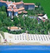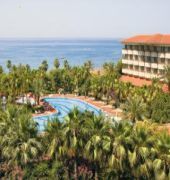 Located approximately 300 m from the Kumkoy area of Side and 6 kms along the coastline from the historical resort, the hotel is within easy access of local transport. A well-established beach property and one of the earliest to be built in the area, it was refurbished in 2001. The welcoming lobby offers a number of services as well as dining, leisure and business facilities. Standard rooms have carpeted flooring and are equipped with air-conditioning, satellite TV, and refreshments from the mini-bar can be enjoyed at the private balcony or terrace. Guests can choose to unwind at the pool, relax in the sauna or steam room, or play tennis.