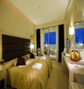 The KAMELYA WORLD FULYA RESORT and SPA is a Tourist hotel. Located in Side Area area. Shopping is accessible by bus/taxi and the nightlife/restaurants are easily accessible by taxi or bus from the hotel. The Kamelya Fulya Hotel & Spa is part of the Kamelya World Complex which consists of one holiday complex and three hotels. Located in Colakli, the hotel is ideally situated 8 kilometers from Side and 65 kilometers from Antalya. The rooms feature bathroom with WC telephone and make-up mirror, twin beds, satellite-LCD screen TV, mini fridge, telephone, Internet access, safe and balcony. The majority of rooms have spectacular views of the Mediterranean Sea. Hotel facilities include Fulya Main Restaurant, pool and snack bar, lobby bar, 3 football fields, Turkish bath, massage parlour, 1 outdoor swimming pool with children section with slides 11 pools in total on the whole Kamalya complex, sauna and fitness center, laundry, 8 tennis courts and archery. There is an Aqua Park on the complex 10:00-18:00. The Kamelya Fulya Hotel & Spa is perfect for a fun filled break.