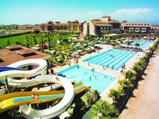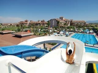 This holiday hotel combines a great location just 2 minutes from the sandy beach and the ever-blue waters of the Mediterranean Sea with an appealing architecture and an elegant interior design. In addition to other features such as a delightful garden and a pool area it also offers a football center. The shops and restaurants of KumkГ¶y are within walking distance, the historic city of Side is only 8 km away.