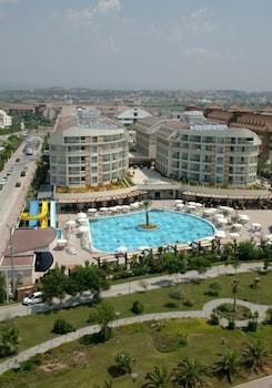 This luxurious hotel is perfectly located on a sprawling, sandy beach in the Evrenseki resort in Turkey. The hotel is a mere 7 km away from the intriguing historical resort of Side. Guests will find public transport links just a few minutes' walking distance away, offering ease of access to other interesting areas and attractions. The hotel boasts a contemporary, attractive architectural style, adding a touch of modernity to its surroundings. Guests are invited into the stylish, elegant surroundings of the interior, where striking designs and luxurious furnishings abound. The guest rooms enjoy a sleek, sophisticated style, and offer a cocoon of tranquility in which to relax and unwind in comfort. The hotel affords guests a selection of first-class facilities and services, catering to their needs to the highest degree of excellence.
