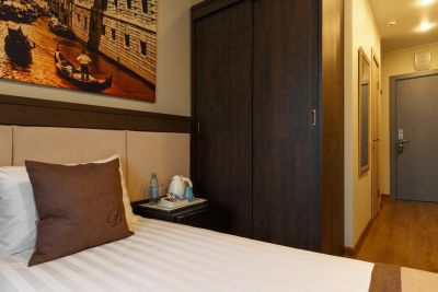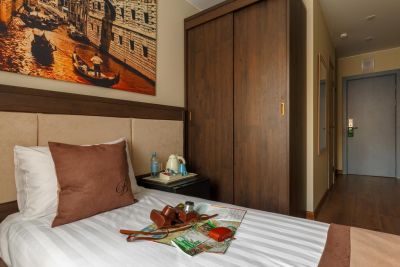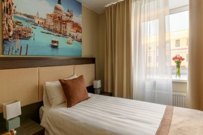 Элегантный отель расположился в историческом центре Петербурга на Синопской набережной на левом берегу Невы в здании, где в XIX веке находились особняк и хлебные амбары И. Г. Грузинского. Представительный и статный – он идеально подойдет как для бизнес-командировки, так и для комфортного, спокойного и уединенного отдыха. Из окон отеля открывается восхитительный вид на Неву, а в белые ночи можно увидеть, как разводятся сразу два моста - Петра Великого и Александра Невского. В непосредственной близости от отеля располагается множество бизнес-центров и достопримечательностей - Свято-Троицкая Александро-Невская Лавра, Смольный собор и музей Фаберже. Все номера отеля выдержаны в едином стиле, гармонично сочетающем в себе модерн, элементы ультрамодного лофта, естественность и простоту эко-направления. Минимализм, натуральные цвета, мягкая удобная мебель, отсутствие сложных элементов декора настраивают на отдых и расслабление. Мансардные окна с видом на Питерские крыши или Неву дают возможность на некоторое время отключиться от суеты большого города, побыть наедине со своими мыслями, возможно, принять какое-то важное решение.