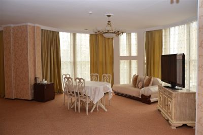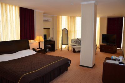 Гостиница «Golden Palace» расположена в Центральной части города Актау, недалеко от Каспийского моря. На территории гостиницы имеется кафе «Казан», которое предлагает блюда узбекской и уйгурской кухни. Все номера отеля «Golden Palace» оснащены мини-баром, электрочайником, телефоном с выходом на городскую, междугороднюю и международную линии, беспроводным интернетом Wi-Fi, телевизором с кабельным телевидением, системой кондиционирования. В каждом номере имеется сейф, фен, гигиенические принадлежности, халаты и тапочки. Предлагается круглосуточное сервисное обслуживание номеров. Всего в Гостинице «Golden Palace» 14 номеров следующих категорий: эконом, стандарт, полу-люкс, люкс, премиум люкс, а также семейный полу-люкс. Гостеприимный и приветливый персонал создаст теплую дружелюбную атмосферу, учтет все Ваши пожелания, и позаботится о том, чтобы пребывание в отеле было максимально комфортным для Вас.
