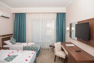 Newly built in 2013, this modern hotel is located in the district of Evrenseki, 8 km from the historical ruins at Side and 650 m(Airmeasurement) from its own beach area. Built in three blocks of 5 floors, the hotel has an outdoor pool and pool with 2 slides, a main buffet restaurant and lobby bar. Facilities are available at the beach including a beach snack bar; a shuttle service is provided. Local amenities can be found in Evrenseki and public transport runs along the main road in front of the hotel with easy access to neighbouring towns.***WIFI IS PER DAY 3 €***