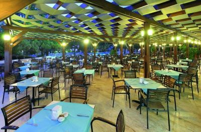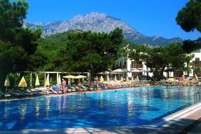 The family-friendly club resort is located on the shores of the Turkish Riviera and with the legendary Olympus Mountain and the green forests of the Taurus Mountains in the background. Kemer and Moonlight Park are approximately 6.5 km from the complex. Antalya Airport is approximately 45 km away. The air-conditioned conference and leisure hotel is set amidst exceptionally landscaped orange gardens and pine trees. It has 397 rooms in total, some in the main building and some in bungalows across the grounds. Younger guests may enjoy the children's playground and a kids' club. A bar, restaurant and disco provide drinks, dining and entertainment for adults. The hotel's recreational team organises a weekly programme of sport events and evening entertainment for children and adults and the many facilities provide an extensive choice of activities for guests of all ages.
