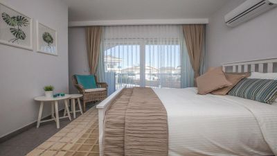 В нашем комплексе 26 апартаментов. 12 из них — дуплексы-пентхаусы, 13 — дуплексы с садом, а также одни апартаменты-люкс, расположенные на верхнем этаже. В каждой квартире есть главная спальня и детская комната с двуспальной кроватью. В гостиной есть раскладной диван, на котором по запросу могут разместиться ещё два человека. В гостиной также есть небольшая мини-кухня, оборудованная всем необходимым. Также есть LED-телевизор.