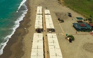 This holiday village is located on a quiet part of the coastline. Guests will find shops and other amenities in the nearest small town of Kizilagac, just 5 km away. Renovated in 2009, this holiday village complex is attractively built and consists of small blocks of accommodation units, spread throughout the pretty grounds. The pleasant lobby area has a small atrium with chandeliers suspended from the wooden beamed roof. Refreshments are served at the bar and restaurant and guests can enjoy the disco. The rooms are pleasantly decorated in a comfortable style and are housed in small villa-type blocks with wooden balconies. The gardens of this establishment feature a total of 3 swimming pools, including a children's swimming area and a castellated water slide. Guests can relax at the sauna and steam room or unwind with a SPA or massage treatment.