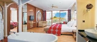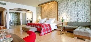 from +12 years bookable48,000 m2 surrounded by extensive gardens. It consists of three and four-storey buildings with a total of 169 rooms. Business center with internet, lift, Mare Nostrum main restaurant (international courts) with outdoor terrace,A la Carte Temple Restaurant from 12:00 to 16:00 (Mediterranean cuisine, g. Fee), bars, free Wi-Fi Internet. TV room, about 29000 m2 garden, swimming pool (about 2000 m2) about 410 m2 indoor pool, doctor on request, umbrellas, beach chairs and cushions are free at the beach and pool, change bed linen 1 x p.Woche.An 6 days p. Week room cleaning.Lodging:Deluxe Double Room (ca.80m2)Deluxe Sunset Suites (ca.160m2)Deluxe Summertime Family Suite (ca.160m2)Luxurious and tastefully furnished rooms with all amenities for a restful sleep, balcony (approx 20 m2) shower / WC, bathrobes, hairdryer, sitting area, safe, satellite LCD TV with music channel, air conditioning (centrally controlled, by the hour), separate Dressing room, minibar, (daily replenishment with water and mineral water), kettle, laundry service fee, room service (08:00 bis 22:00 clock), sea & pool side, optional country side buchbar.Jeder guest receives per week 2 baths - and beach towels, change of linen once a week, housekeeping six times a week.Meals:"Rediscover taste" milk and milk products, meat and fruit and vegetables come from our own farm.All inclusive (AI): breakfast, lunch, dinnerHalf-board (UHB): Breakfast, dinner (in the main restaurant) from the buffet. Various local alcoholic (over 18 years) and non-alcoholic drinks are included at the respective open bars between 10:00 and 24:00.For a fee: import drinks (from 18j.), Ice cream, fresh fruit juices. Room service from 08:00 to 22:00Two tennis courts for free, tennis rackets and ball rental, table tennis, billiards, fitness centerC / in: from 14:00C / out: Until 12:00