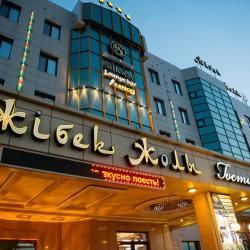 Hotel "Zhibek Zholy" is one of the most comfortable and modern hotels of a class "Lux" in Shymkent. The hotel is on the same street Zhibek Zholy, 5 minutes from downtown and 10 minutes from the new administrative centre and key commercial and entertainment complexes. Hotel "Zhibek Zholy" offers comfortable rooms, a restaurant, lounge bar, Banquet and conference facilities. All rooms are furnished with exclusive furniture models, the bathrooms are equipped with branded fixtures. The hotel is equipped with a unified system of ventilation and air-conditioning, which allows us to maintain freshness and comfort throughout. It provides convenient Parking and Shuttle service from the airport and train station. The service of the hotel fully corresponds to international standards.