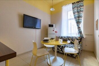Этот Апартаменты предлагает такие удобства, как бесплатная парковка поблизости. Курение в помещениях запрещено.Трансфер из аэропорта и обратно (круглосуточно) предоставляется за дополнительную плату. rooms: Располагайтесь с комфортом в этой квартире с индивидуальным декорированием. У вас будет кухня с холодильником и плитой. ЖК-телевизор c кабельными каналами не даст вам скучать. У вас в номере также будет бесплатный беспроводной доступ к интернету. В номере есть выделенная зона для отдыха и микроволновая печь, уборка производится раз в неделю. Апартаменты находится в самом сердце города Санкт-Петербург. Мариинский театр и Исаакиевский собор расположены в 15 минутах ходьбы. Этот 4-звездочный Апартаменты — вариант с прекрасным расположением: Государственный музей «Эрмитаж» и Зимний дворец находится в 3,1 км, Дворцовая площадь — в 1,7 км от него. headline: Неподалеку – Мариинский театр