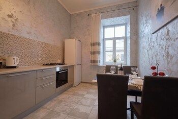 amenities: Гостям предоставляются такие услуги и удобства как бесплатный беспроводной доступ в интернет и телевизор в общественном месте. business_amenities: Гостям предоставляются следующие услуги и удобства: многоязычный персонал и услуги прачечной. Трансфер из аэропорта и обратно (круглосуточно) предоставляется за дополнительную плату, на территории отеля есть бесплатная самостоятельная парковка. rooms: Располагайтесь с комфортом в этой квартире с индивидуальным декорированием. У вас будет кухня с полноразмерным холодильником или морозильником и духовкой. У этого номера есть балкон. У вас в номере будет бесплатный беспроводной доступ к интернету, а 42-дюйм. плоскоэкранный телевизор не даст вам скучать. В номере есть выделенная зона для отдыха и микроволновая печь, по запросу предоставляется детская кроватка (за дополнительную плату). location: Апартаменты — вариант в самом сердце города Санкт-Петербург. Смольный институт и Церковь Спаса на Крови расположены в 5 минутах езды на автомобиле. Этот Апартаменты — вариант с прекрасным расположением: Казанский собор находится в 3 км, Государственный музей «Эрмитаж» и Зимний дворец — в 3,3 км от него. headline: Санкт-Петербург (Центр Санкт-Петербурга)