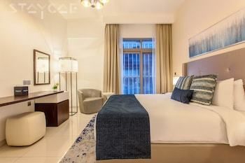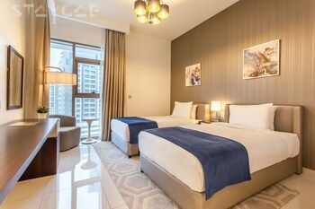business_amenities: Предоставляется бесплатная самостоятельная парковка. rooms: Располагайтесь с комфортом в этой квартире с кондиционированием. У вас будет мини-кухня с холодильником и духовкой. ЖК-телевизор со спутниковыми каналами не даст вам скучать. У вас в номере также будет бесплатный беспроводной доступ к интернету. В номере есть микроволновая печь и стиральная машина, уборка производится по требованию. location: Апартаменты — хороший вариант в городе Дубай. Дубайская опера находится в 5 мин. езды на автомобиле, а Дубайский аквариум и подводный зоопарк — в 10 мин. езды. Этот Апартаменты — вариант с прекрасным расположением: Фонтан Дубай находится в 4,2 км, Burj Khalifa — в 4,2 км от него. headline: Неподалеку – Фонтан Дубай