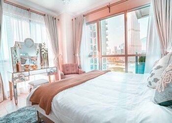 business_amenities: Гостям предоставляются следующие услуги и удобства: хранение багажа и лифт. Предоставляется бесплатная самостоятельная парковка. rooms: Располагайтесь с комфортом в этой квартире с индивидуальным декорированием. У вас будет кухня с полноразмерным холодильником или морозильником и духовкой. У вас в номере будет 60-дюйм. телевизор Smart TV со спутниковыми каналами, а также бесплатный беспроводной доступ к интернету. В номере есть микроволновая печь и кофеварка/чайник. location: Апартаменты находится в районе Центр Дубая, Дубай. Фонтан Дубай и Dubai Mall расположены в 5 минутах езды на автомобиле. Этот Апартаменты — вариант с прекрасным расположением: Burj Khalifa находится в 3 км, Дубайский аквариум и подводный зоопарк — в 5,1 км от него. headline: Дубай (Центр Дубая)
