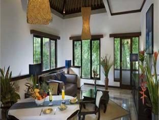 Отель расположен в историческом районе Гианьяр (Gianyar), между Сануром (Sanur) и Убудом (Ubud), рядом с торговыми центрами и художественным рынком Сукавати (Sukawati). Отель находится в 45 минутах езды от аэропорта Нгура Рай (Ngurah Rai).В вилле могут проживать максимум трое взрослых. В номерах кровать "кинг-сайз" и один раскладной диван в гостиной. Площадь главной спальни - 4.5 на 4 м. Из сада можно пройти в гостиную. С одной стороны гостиной есть дверь на веранду и к бассейну. На другой стороне находится обеденная комната и кухня. Через гостиную можно пройти в спальню, где стоит кровать "кинг-сайз", и где находится спальня в европейском стиле. В номерах кондиционер, холодная и горячая проточная вода. Ресторан предлагает международную кухню.Отель расположен в долине Сукавати (Sukawati), на склоне холма, в окружении пышных тропических садов. Отель выходит на долину Сукавати (Sukawati) и реку Пелиатан (Peliatan).Это 4-звездочный курорт первого класса. На курорте есть ресторан, специализирующийся на разнообразных блюдах азиатской и европейской кухни, а также кафе на террасе с видом на реку, спа-салон, состоящий из трёх свит, которые также выходят окнами на реку, большой бассейн и маленький детский бассейн, бары у бассейна и в ресторане. (04/09CB).