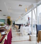 The hotel opened in 2003 and the property consists of two modern 25-storey deluxe buildings housing a total of 290 guest rooms. Further facilities available to guests at the air-conditioned establishment include a lobby with a 24-hour reception and lift access to the upper floors. The hotel is located in a modern high-rise building in Pudong. It is 15-minute drive from Pudong New International Exhibition Centre. Each room features a bathtub, double bed, individually regulated air conditioning and heating, kitchen utilities, an in-room safe, ADSL Internet access, satellite TV and a telephone. There is an indoor swimming pool, gym and sauna at this hotel.