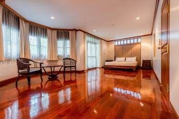 Воспользуйтесь разнообразными возможностями для отдыха и развлечений, такими как открытый бассейн и фитнес-центр. Этот отель на вилле предоставляет дополнительные услуги и удобства: бесплатный беспроводной доступ в интернет и услуги консьержа. Для удобства гостей предоставляется следующее: химчистка или прачечная, круглосуточная работа стойки регистрации и хранение багажа. Трансфер из аэропорта и обратно (круглосуточно) предоставляется за дополнительную плату, на территории отеля есть бесплатная самостоятельная парковка. Располагайтесь с комфортом в этом отеле на вилле с кондиционированием. У вас будет кухня с полноразмерным холодильником или морозильником и духовкой. У этого номера есть балкон или внутренний дворик. Телевизор Smart TV c кабельными каналами не даст вам скучать. У вас в номере также будет бесплатный беспроводной доступ к интернету. Собственная ванная комната оснащена глубокой ванной для купания, также в ней есть бесплатные туалетные принадлежности. Отель на вилле расположен в районе Дусит, Бангкок. Речной берег в Бангкоке находится в 1 мин. езды на автомобиле, а Памятник Победы — в 5 мин. езды. Этот 4-звездочный отель на вилле — вариант с прекрасным расположением: Торговая улица Кхаосан-роуд находится в 3,8 км, Университет Тхаммасат — в 4,9 км от него. Бангкок (Дусит)