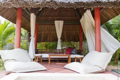 The Full Moon Village is a hidden retreat located away from touristic bustle on a long strip of untouched sandy beach only 20 km away from Mui Ne. Inspired by traditional Northern Vietnamese countryside houses 17 spacious villas have modern amenities fully equipped kitchen outdoor hot tub and a beautiful landscaped garden. The décor of villas includes distinctive handicrafts and rare fabrics carefully collected from different corners of Vietnam.Our enchanting resort reflects the romance and timeless beauty of Vietnam in an exclusive blend with a thrill of water sport activities.