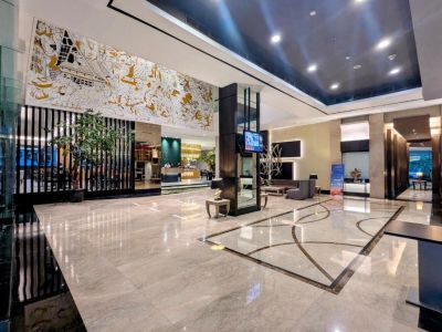 Четырехзвездочный отель Grand Zuri Jababeka находится в 12 минутах езды от торговых центров Mega Bekasi и Metropolitan. К услугам гостей комфортабельные номера с телевизорами с плоским экраном и WiFi, а также открытый бассейн. Современные номера отеля Grand Zuri Jababeka располагают телевизором со спутниковыми каналами, просторным рабочим местом и сейфом. Также к услугам гостей принадлежности для чая/кофе и холодильник. Кроме того, производится круглосуточная доставка еды и напитков в номер. Гости также могут заказать массажные процедуры в спа-салоне или расслабиться в сауне. Помимо этого, в распоряжении гостей отеля Grand Zuri фитнес-центр, прачечная и химчистка. Кроме того, на территории отеля имеется бизнес-центр. В ресторане отеля Grand Zuri вам предложат блюда местной и интернациональной кухни. В баре отеля можно заказать прохладительные напитки и коктейли.