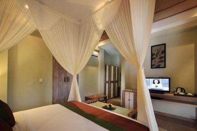 Nestled within lush green valleys and rice fields, this hotel offers a calming retreat in relaxing surroundings. Some of the most important tourist attractions are easily accessible, including Ubud Market and Ubud Palace, all within a 30-minute driving distance away, whilst Blanco Museum is a 15-minute driving distance from the resort. Stylish and spacious, each unit is beautifully appointed with rustic wood furnishings and thatched roofs. Moreover, guests will appreciate the stunning views over the garden, the pool or to the valley from their private terrace or balcony. The units include an en suite bathroom with large windows and come completely equipped with premium toiletries. There is a yoga studio on top of spa rooms ideal to rejuvenate body and mind, and guests will enjoy free Wi-Fi access in all areas and also a complimentary scheduled shuttle service to central Ubud. Those who wish to explore the area can make use of the free bicycles provided by the resort.