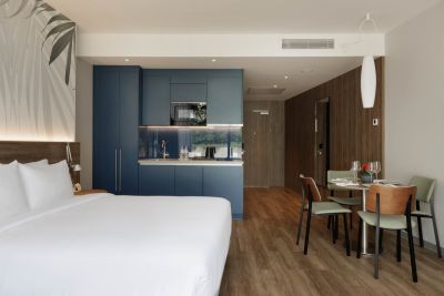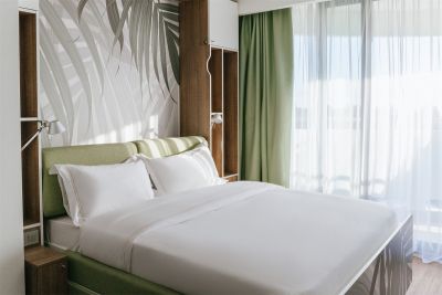 Современный апарт-отель Космос Стей Ле Ронд Сочи находится в 12 км от центра Сочи в районе Дагомыс. Отель расположен на расстоянии 800 метров от береговой линии. Апарт-отель объединил в себе стильный дизайн от архитектурной студии интерьеров «S+S», ресторанный комплекс «Дружба by Novikov» под управлением известного московского ресторатора. Космос Стей Ле Ронд Сочи предлагает все, что необходимо для комфорта гостей. Воспользоваться полноценной курортной инфраструктурой можно не покидая территории апарт-отеля. Для гостей доступны: открытый бассейн с подогревом, джакузи, детский бассейн, детская комната, консьерж-сервис, парковая зона. В летний сезон от отеля до пляжа курсирует комфортабельный трансфер. Гостям предоставляются пляжные зонтики, шезлонги, полотенца. 458 современных апартамента с полностью оборудованной кухней подходят для длительного семейного проживания или романтических выходных. В каждом номере: балкон, станция для приготовления чая и кофе, холодильник, посудомоечная машина, обеденный стол, набор посуды, бесплатный Wi-Fi.