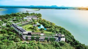 On a lake With a stay at DoubleTree by Hilton Weerawila Rajawarna Resort in Weerawila, you'll be 5.2 mi (8.3 km) from Bundala National Park and 9.4 mi (15.1 km) from Lunugamvehera National Park. This 4.5-star hotel is 13 mi (20.9 km) from Kirinda Temple and 14.2 mi (22.9 km) from Yala National Park.