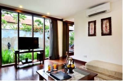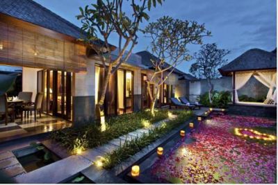 Located at exclusive address on the Petitenget and Seminyak border the hotel is just a 20 minute drive to Bali's Ngurah Rai International Airport. Stylish boutiques, restaurants and bars are all located within the closest vicinity. Each villa embraces the warmth of Bali and creates a nurturing ambience that relaxes the senses. This luxuriously appointed category has been designed for absolute comfort. It features a semi-open kitchen facility and dining environment that comes complete with all necessary tableware. The living room is fully air- conditioned offering refreshing views over the pool and traditional lounging pavilion. The master bedroom is a private haven with its spa- styled en- suite bathroom featuring an outdoor rain shower and generous terrazzo tub. Breakfast and room service for lunch and dinner are available.