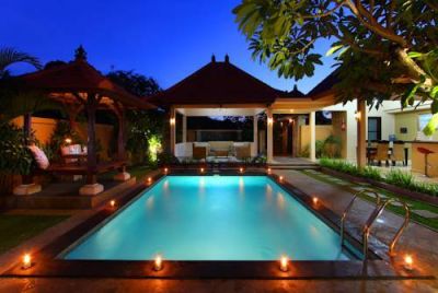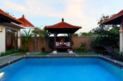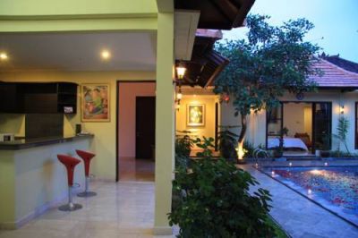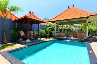 The villa is located in Kerobokan Village within 5 minutes of the Kerobokan traditional market and 20 minutes' drive from the famous Tanah Lot. There are numerous restaurant, bars, clubs, shops and public transport links nearby. The beach is about 5 km away in Brawa. Bali's Ngurah Rai International Airport is about 15 km away.This conference hotel was built in 2009 and finished in 2010. Its design is a mix of Balinese and modern styles and spread over approximately 2.5 acres. There are a total of 15 accommodation units on offer including 5 villas. Guests are welcomed in the lobby and the hotel reception is available on a 24-hour basis with 24-hour check-out service also being available. Facilities include air conditioning, a breakfast/dining room, wireless Internet access, room and laundry services, as well as a bicycle hire service and a free car park.The villas come with a fitted kitchen with utensils, a fridge, microwave, tea and coffee making facilities as well as a dining room with 6 seats. They also feature an outside living room in which guests can hear birds chirping in the morning. The atmosphere is peaceful so it is good for guests in search of rest. All accommodation units are en suite with a shower, bath and a hairdryer. Double or king-size beds are available. Standard in-room amenities include a satellite/cable TV, Internet access, a safe, minibar, ironing set and individually regulated air conditioning.Guests are invited to take a refreshing dip in the outdoor swimming pool or enjoy a soothing massage or spa treatment. The nearby beach is sandy.The villa offers an American, continental breakfast and Indonesian breakfast, all for an additional fee. Lunch is served in buffet form and dinner is available from a set menu. Guests are asked to contact the hotel for further information.