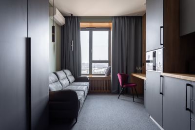 AP-iN aparts Москва - современные дизайнерские апартаменты, расположенные в самом сердце Москвы по адресу улица Василисы Кожиной, 13. Эти уютные и полностью оборудованные квартиры находятся на 22, 25 и 27 этажах жилого комплекса МФК «Матч Поинт», что обеспечивает потрясающие виды на город! Апартаменты посуточно на Кутузовском - идеальное решение для краткосрочной аренды, будь то романтическое свидание, деловая командировка или семейный уикэнд! В апартаментах есть всё необходимое для комфортного отдыха: дизайнерский ремонт, современная мебель, техника, бесплатный Wi-Fi, продуманная до мелочей зона для отдыха и полноценная кухня. Во дворе комплекса находится современная детская площадка. Это отличный вариант для тех, кого интересует посуточная аренда апартаментов премиум класса в Москве в непосредственной близости к главным достопримечательностям столицы и бизнес-центров города! Расстояние до ближайшего аэропорта составляет 25 км., до железнодорожного вокзала - 6 км., до ближайшей станции метро - 1 км. Удобное расположение в непосредственной близости к Москва Сити, МПГУ, Волейбольной арене Динамо, Парку Победы и другим культурным и бизнес-объектам, несколько станций метро в 10-20 минутах пешком, остановка общественного транспорта рядом с ЖК, развитая инфраструктура с массой кафе, ресторанов, магазинов и прочих услуг. Апартаменты оснащены всем необходимым для комфортного отдыха. В распоряжении гостей удобные кровати с ортопедическими матрасами, кондиционер, полностью оборудованная кухня с обеденной зоной и всем необходимым, телевизор с плоским экраном и собственная ванная комната с душем, халатами и феном и индивидуальными средствами гигиены. В числе прочих удобств — микроволновая печь, холодильник, плита, чайник, тостер. В апарт-отеле работает бесконтактное заселение, на дверях номеров установлены электронные замки. После оформления бронирования через администраторов отеля, гостям отправляется индивидуальный код для входа. Администраторы отеля круглосуточно на связи с гостями и всегда помогут решить любую возникающую ситуацию.