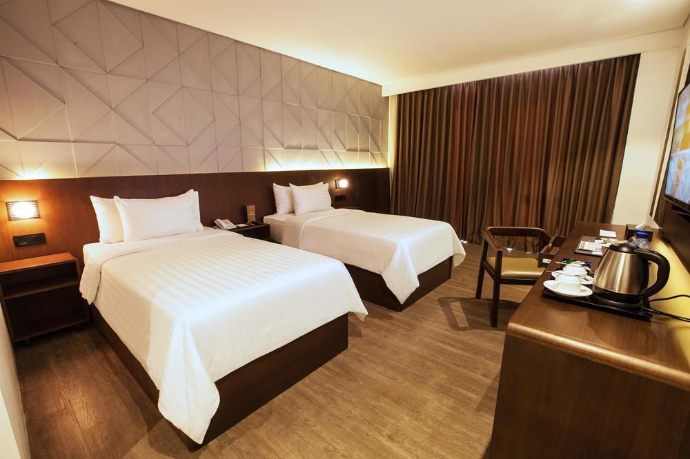 Special check-in instructions Front desk staff will greet guests on arrival. Know Before You Go No pets and no service animals are allowed at this property. Property Location A stay at Golden Tulip Pontianak places you in the heart of Pontianak, within a 5-minute drive of Gajah Mada Shopping Complex and Vihara Bodhisatva Karaniya Metta. This upscale hotel is 1.1 mi (1.8 km) from Kapuas Indah Building and 1.1 mi (1.8 km) from Alun Alun Kapuas. Rooms Make yourself at home in one of the 183 air-conditioned rooms featuring LCD televisions. Complimentary wireless internet access keeps you connected, and cable programming is available for your entertainment. Private bathrooms with showers feature complimentary toiletries and hair dryers. Conveniences include phones, as well as safes and desks. Dining For lunch or dinner, stop by Branche, a restaurant that specializes in international cuisine. Dining is also available at the coffee shop/cafe, and 24-hour room service is provided. Unwind at the end of the day with a drink at the bar/lounge or the poolside bar. Rec, Spa, Premium Amenities Relax at the full-service spa, where you can enjoy massages and facials. If you're looking for recreational opportunities, you'll find an indoor pool and a fitness center. Additional amenities at this hotel include complimentary wireless internet access, concierge services, and wedding services. Business, Other Amenities Featured amenities include a business center, express check-out, and complimentary newspapers in the lobby. Planning an event in Pontianak? This hotel has 6394 square feet (594 square meters) of space consisting of conference space and meeting rooms. Free valet parking is available onsite.
