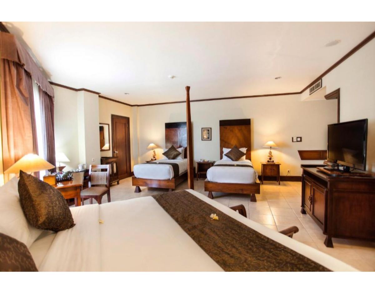 Strategically situated in the heart of Kuta the Ramayana Resort & Spa sits just 150 metres from the famous white, sandy Kuta Beach. For guests who want to explore the local wares the resort is located close to the traditional art market and shopping centre. Within easy access of the hotel guests will also find Waterbom Park, Hard rock cafe and links to public transport networks. It is a mere 20 minute drive from the capital city Denpasar and 10 minutes from the airport.Enjoying traditional Balinese style architecture combines with modern design the resort is nestled amidst lush tropical gardens. The beautiful guest rooms have been furnished with a blend of Balinese art and modern conveniences to add to the comfort guests will experience. The little ones will enjoy the childrens' pool and all the family can enjoy cultural activities and try Balinese dancing and cooking.