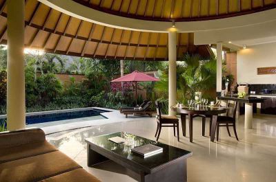 Located on the outskirts of Bali's trendy Seminyak area, this hotel is only a minute away from one of its most famous golden sand beaches. Guests will be surrounded by exclusive restaurants and shopping boutiques, while the famous Ku De Ta restaurant can be reached in 10 minutes by car and is more than worth the journey. Both the villas and the property on which they are located are really beautiful and perfectly reflect the traditional Balinese architecture plus a healthy infusion of modern designs and facilities. All of the units have a large central living area where guests can enjoy their meals or watch a movie on the large screen TV, and private swimming pool with sun deck for lazing around and sipping cocktails all day.