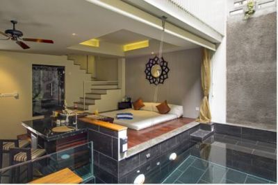 Отель расположен в уединенном месте, в нескольких минутах ходьбы от пляжа Куты, торговых центров, спа, отелей, ресторанов, баров и клубов. До международного аэропорта Нгурах-Раи 10 минут езды на машине. Уютные виллы с наполовину открытыми гостиными в азиатском стиле, примыкающими к ним кухнями и небольшими бассейнами. Каждая вилла оформлена в современном минималистском стиле и оснащена всеми удобствами по стандартам 5-звездочных отелей. В отеле подают завтрак, обед и ужин. Здание отеля - современное . Маленький вестибюль. 18 свит - вилл и лофтов предназначены специально для пар, желающих провести романтический отпуск в интимной обстановке, а также прикоснуться к уникальному балийскому гостеприимству в самом веселом месте - в Куте.