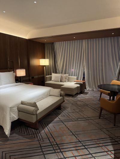 Отель 4 Seasons в Даляне был действительно хорош. Менеджер Кэрри Ванг была просто феноменальной. Она сделала всё возможное и сделала всё возможное, чтобы сделать пребывание моей семьи прекрасным. Номера красивые и совершенно новые, а обслуживание – превосходным. Персонал очень дружелюбный и хорошо говорит по-английски. Я бы сказал, что это лучший отель, особенно для иностранцев, приезжающих в Далянь. Вид великолепный. Обслуживание хорошее. Завтрак хороший. Номер чистый. Здесь можно очень комфортно провести время. Вид великолепный. Обслуживание хорошее. Завтрак тоже вкусный. Номер очень чистый. Здесь можно очень комфортно провести время. Вид великолепный. Обслуживание хорошее. Завтрак тоже вкусный. Номер очень чистый. Здесь можно очень комфортно провести время. Я забыл о двух фигурках в номере и вспомнил о них только спустя долгое время. Я очень благодарен отелю за то, что они помогли мне их сохранить. К тому же, королевский торт был хорош, но сотрудники пекарни не знали, что в него нужно добавлять зефир.