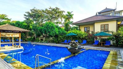 Location This club resort is located within walking distance of all the main shops, the Discovery Shopping Mall and Waterbom Park. It is also conveniently close to the island's numerous restaurants and vibrant nightspots. Kuta Beach is about a 15-minute drive away, while Denpasar is approximately 45 minutes away by car. The resort is just a 5-minute drive from Ngurah Rai International Airport. Facilities Guests have a choice of 139 double rooms. Check-in and check-out are possible at any time at the 24-hour reception desk. The hotel provides a safe, a hairdresser and a conference room. Internet access is available to guests in public areas. The grounds of the hotel feature a playground and a lovely garden. Guests arriving by car can park their vehicles in the car park. Services include a hotel shuttle bus. Rooms Rooms feature a kitchen and a bathroom, and air conditioning ensures just the right temperature. A balcony is among the standard amenities of some rooms. Rooms have a double bed or a king-size bed. A safe and a minibar are also available. Additional features include a refrigerator and a tea/coffee station. A direct dial telephone, a television with satellite/cable channels and WiFi (no extra charge) provide all the essentials for a comfortable holiday. Bathrooms are equipped with a shower and a bathtub, as well as a hairdryer. Family rooms are available for parents with children. Sports/Entertainment The outdoor pool complex includes a children's swimming area and is ideal for working out or just relaxing. Guests can use sun loungers and parasols on the terrace. The pool bar serves a selection of refreshing drinks. For those who wish to stay active while on holiday, the hotel offers tennis. Guests can enjoy a wide range of indoor sports, including a gym, table tennis, billiards, darts and callisthenics. The wellness area offers pure relaxation and includes a spa and a beauty salon. For a fee, massage treatments are available to guests. Meals The dining area includes a restaurant and a bar. Bed and breakfast can be booked. A delicious breakfast is an excellent reason to rise and shine. At lunch and dinner, guests can order dishes à la carte or choose a set menu. Payment The hotel accepts the following credit cards: American Express, VISA and MasterCard.