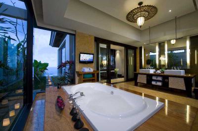 \"This luxurious beach hotel is perched on the cliffs of Balis southernmost peninsula. The International Airport is approximately 12 kms away. The air-conditioned establishment has 73 guest rooms spread across 3 storeys. Business guests can use the conference facilities. Each guest room is equipped with an LCD TV with satellite/cable channels, a BOSE stereo system, wireless Internet access, an international direct dial telephone, and individually regulated air conditioning. Furthermore, the accommodation units are fitted with a Balinese-style outdoor shower. The establishment has an outdoor pool and a childrens swimming area. Guests can also use the gym or hire mountain bikes for both adults and children. A hot tub, and massages and spa treatments are available. The hotel restaurant serves a breakfast buffet, as well as set menu and à la carte lunches and dinners.\"