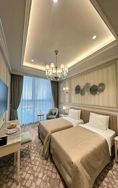 Роскошный пятизвездочный отель T-CITY PRESIDENTIAL расположен в самом сердце Ташкента - столицы Узбекистана. На высоте, превосходящей все здания города, он предлагает своим гостям уникальную возможность наслаждаться захватывающими панорамными видами на окружающую местность. Отель T-CITY PRESIDENTIAL является идеальным выбором для тех, кто желает комфорта и роскоши в сочетании с удобным расположением вблизи главных достопримечательностей города, что позволяет легко и быстро осмотреть все интересные места. Гости могут наслаждаться разнообразием услуг: от спа-процедур и фитнес-центра до экскурсионных туров по окрестностям. Вечером ресторан отеля предлагает изысканные блюда местной и международной кухни, приготовленные из свежих продуктов. Для деловых путешественников предусмотрены современные конференц-залы, оснащенные всем необходимым для проведения успешных мероприятий. Доброжелательный персонал готов удовлетворить любые запросы, делая ваш отдых незабываемым. В нашем отеле каждый найдет что-то для себя, позволяя забыть о повседневных заботах и наслаждаться атмосферой роскоши и уединения.