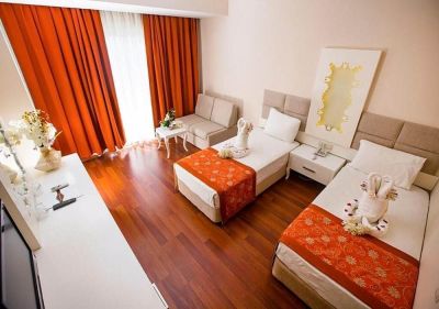 Отель Grand Mir' Amor расположен в районе Кемера, всего в 250 метрах от галечно-песчаного пляжа. В отеле есть турецкая баня, сауна и открытый бассейн с водными горками. Во всех номерах имеется кондиционер, ЖК-телевизор и мини-бар. Также в распоряжении гостей ванная комната с душем и туалетом. В ресторане в формате "шведского стола" подают завтрак, обед и ужин. В баре отеля в течение всего дня можно заказать различные алкогольные и безалкогольные напитки. Во второй половине дня также предлагаются закуски и чай. Вы можете посетить фитнес-центр отеля. Для маленьких гостей оборудованы детский бассейн и игровая площадка.