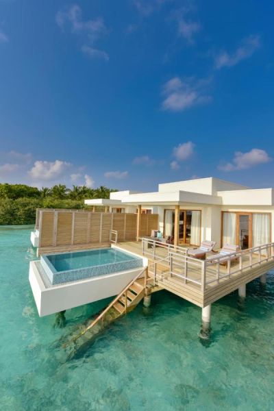 Dhigali Maldives is surrounded by a large house-reef, beyond the lagoon and is a 45-minute ride by sea plane from Male airport. The guests can enjoy a meal at one of the 7 dining options.