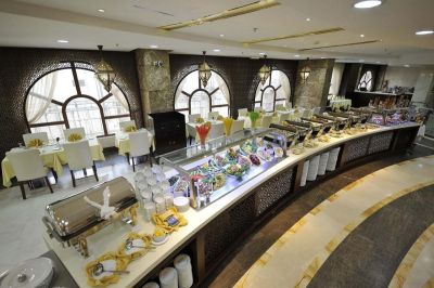 CheckIn:. Checkout: Meshal Hotel Al Madina are Luxuriously designed hotels to the highest standard,. Located in the heart of Al Madina Al Munawra city and close to Madina international airport . Both hotels boasts beautifully appointed guest rooms and top class facilities to meet the needs of pilgrims, Umrah & business travelers. The hotel is offering different types of rooms including handicapped, 158 Luxurious rooms consisting of 70 Double room, 60 Triple room & 28 Executive suites all rooms are equipped with individually controlled air-condition satellite TV, Direct – Dial phone /voice mail , internet access 220 volt supply , hairdryer , mini fridge , electronic safe , prayers mats & The holy Quran.