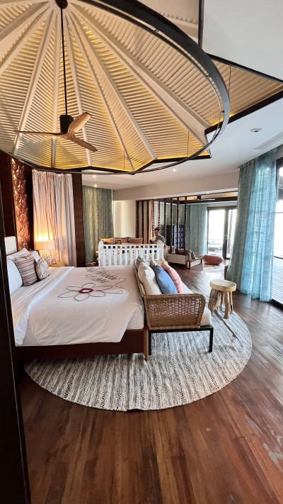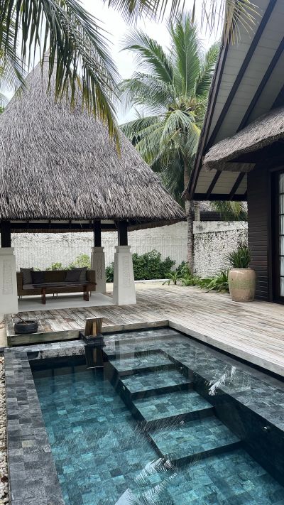 Замечательный отель с прекрасным сервисом. Очень комфортный и организованный трансфер, уже через 15 минут после выхода из терминала мы были на комфортном катамаране. Очень удобные номера, большие и очень чистые. Также бассейн очищали каждый день. По еде этот остров наш фаворит. Действительно вкусно готовят, 90% еды из под ножа. Большой выбор блюд. Все рестораны на острове предлагают разные кухни, это огромный плюс. Готовят даже сверх меню, если у вас есть особые пожелания. Спасибо батлеру Salim, он сделал все, чтобы нам было удобно с ребёнком, очень нам помогал и всегда был с нами на связи. Отличный детский клуб с бассейном, было очень спокойно за ребёнка, спасибо Anny, она очень добрая и легко располагает к себе ребёнка. Они гуляли, плавали, катались на багги, кормили рыбок, помимо занятий в самом клубе.Ребёнку было очень весело. Чистые пляжи без кораллов, очень чистые бассейны без запаха хлорки, за чистотой территории хорошо следят. Очень внимательный и дружелюбный персонал. Качество сервиса очень высокое. Этим отель выделяется. Плюс замечательный клининг, который подстраивается под ваше расписание, в номере всегда чисто. Спасибо за прекрасный отдых. По началу мы были расстроены, что на соседнем острове стройка, но здесь там много плюсов и потрясающий сервис, что в итоге нам стало все равно на неё. Напишу о минусах, о плюсах пишут все. После того, как Jumeirah решили избавиться от этого актива, новые владельцы никак не займутся реновацией, планируя выехать на том что есть. Состояние вилл, настила достаточно уставшее. Грязные поцарапанные стекла, местами черная плесень, следы ржавчины. Пятна на стенах, вот прямо сейчас смотрю на треснувший угол рамы картины в вилле. У соседней виллы что-то с крышей,кусок соломы как корова слизала. До пандемии скорее всего было сильно лучше. На качелях в конце водных вилл скобки ржавые, по периметру, девушка порвала новые шифоновые штаны, первый раз надела. Местами следы неумелого ремонта. Кому-то понравился, что виден Мале, кому-то нет. Но вид из виллы на насыпаемый остров с экскаваторами - навряд ли кому-то, равно как и в другой стороне цементный завод в нескольких километрах. Отвратительно медленный Интернет. Местами очень шумно от генераторов и кондиционеров Снорклинг под водными виллами - один из самых бесполезных занятий по сравнению с теми, что видел на Мальдивах ранее. Рыб очень, очень мало. В общем, этот отель - это как маленький городок - улица, заборы, магазины. С видом на столицу. И стройки. Мне больше нравятся другие Мальдивы - где человек гость, а не селянин Всё замечательно! Хорошее расположение, отличный сервис! Водные виллы имеют горки - дети будут в восторге! На пляжных виллах - хороший пляж с коралловыми рифами. Питание - All incisive.