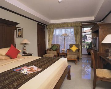 Strategically situated in the heart of Kuta the Ramayana Resort and Spa sits just 150 metres from the famous white, sandy Kuta Beach. For guests who want to explore the local wares the resort is located close to the traditional art market and shopping centre. Within easy access of the hotel guests will also find Waterbom Park, Hard rock cafe and links to public transport networks. It is a mere 20 minute drive from the capital city Denpasar and 10 minutes from the airport.Enjoying traditional Balinese style architecture combines with modern design the resort is nestled amidst lush tropical gardens. The beautiful guest rooms have been furnished with a blend of Balinese art and modern conveniences to add to the comfort guests will experience. The little ones will enjoy the childrens' pool and all the family can enjoy cultural activities and try Balinese dancing and cooking.