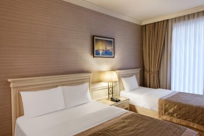 Местоположение отеля Elite World Prestige находится в самом сердце города Стамбул, в пределах пешей доступности вы найдете следующие достопримечательности и объекты: Площадь Таксим и Республиканская художественная галерея "Таксим". Отель категории «4-зв. » находится вблизи следующих достопримечательностей и объектов: Дворец Топкапы и Мечеть Сулейманийе. Номера Почувствуйте себя как дома в одном из 102 номеров с кондиционером и другими удобствами, в числе которых минибар. Бесплатный беспроводной доступ в интернет позволит всегда оставаться на связи, а спутниковое телевидение не даст скучать. В ванных комнатах раздельные ванны и душевые и фен. Предоставляются следующие удобства и услуги: сейфы и письменный стол, а также (по запросу) утюг, гладильная доска. Отдых, спа, удобства высшего класса Воспользуйтесь разнообразными возможностями для отдыха и развлечений, такими как оздоровительный клуб, закрытый бассейн и спа-ванна. Отель в стиле ар-деко предоставляет дополнительные услуги и удобства: бесплатный беспроводной доступ в интернет, уход/присмотр за детьми (за дополнительную плату) и услуги по проведению бракосочетаний. Кафе и рестораны Когда вы проголодаетесь, отель приглашает вас посетить ресторан, где подается завтрак, обед и ужин. Для тех, кто предпочитает уединиться, отель предоставляет круглосуточное обслуживание номеров. Загляните в бар/лаунж или бар у бассейна, чтобы расслабиться за любимым напитком. Бизнес, другие удобства и услуги Для удобства гостей предоставляется следующее: бизнес-центр, ускоренная регистрация при отъезде и бесплатные газеты в холле. Если вы планируете деловое или развлекательное мероприятие, отель предлагает вам пространство площадью 50 кв. м, на котором расположены конференц-центр, конференц-залы и конференц-залы. За дополнительную плату гостям предоставляется трансфер из отеля в аэропорт. На территории отеля возможна бесплатная парковка с доставкой машины в назначенное место. Полезная информация Следующие услуги необходимо резервировать заранее: массаж. отель примет ваш заказ в случае предварительного обращения. Для резервирования воспользуйтесь контактной информацией из письма с подтверждением бронирования. Плата за проживание детей не старше 6 -летнего возраста не взимается при условии их размещения в одной комнате с родителями или опекунами на имеющихся кроватях. В номера допускаются только зарегистрированные постояльцы. В этом отеле есть смежные/соседние номера, которые могут быть предоставлены в зависимости от наличия. Для того чтобы запросить смежные/соседние номера, свяжитесь с отелем напрямую, используя контактную информацию в подтверждении бронирования. Дополнительные платежи Следующие платежи и залоги взимаются отелем во время оказания соответствующей услуги, при регистрации по прибытии или регистрации при отъезде. Плата за завтрак: от 34 TRY с человека (приблизительно) Плата за трансфер до аэропорта для взрослого: от 165,00 TRY за человека (в одну сторону) Плата за поздний отъезд: от 30 TRY Возможно, приведенный выше список неполон. Суммы платежей и залогов могут быть указаны без учета налога и могут быть изменены. На территории отеля есть закрытый бассейн и спа-ванна. Другие места отдыха и развлечений: оздоровительный клуб, сауна и баня/парная. Следующие услуги необходимо резервир