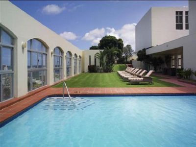 Facilities and services include a 24 hrs reception, breakfast room, restaurant bar, outdoor pool, elevator, wireless Internet in public areas (extra charge), business center, meeting room, spa (extra charge), and parking (extra charge). The rooms are equipped with air conditioning, TV, telephone, wireless Internet (extra charge), safe box, hairdryer and coffee/tea facilities. Address: 83/91 Snell Parade, North Beach, 4001, Durban, South Africa.
