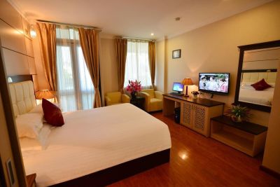 Golden Cyclo Hotel находится в центре города Ханой, всего в нескольких шагах от следующих достопримечательностей и объектов: Рынок Ханг-Да и Национальный вьетнамский театр Туонг. Этот 4-звездочный отель находится в непосредственной близости от таких достопримечательностей, как Vietnam National Tuong Theatre и Пагода Ли-Трьеу-Куок-Су. Почувствуйте себя как дома в одном из 62 номеров с индивидуальным декорированием, которые оснащены следующим оборудованием: холодильник и минибары (с бесплатными напитками). В номере имеется кровать, пружинный ортопедический матрас. Компьютер с бесплатным проводным и беспроводным доступом в интернет позволят вам всегда оставаться на связи. Кроме того, к вашим услугам цифровое телевидение. Собственные ванные комнаы, ванны или душевые. Предоставляется душ с дождевой насадкой и дизайнерские туалетные принадлежности. Воспользуйтесь разнообразными возможностями для отдыха и развлечений, такими как фитнес-центр и прокат велосипедов. Этот отель предоставляет дополнительные услуги и удобства: бесплатный беспроводной доступ в интернет, услуги консьержа и уход/присмотр за детьми (за дополнительную плату). Когда вы проголодаетесь, отель приглашает вас посетить ресторан, где подается завтрак, обед и ужин. Кроме того, к вашим услугам кафетерий/кафе, где всегда можно перекусить, а также обслуживание номеров (по расписанию). Загляните в бар/лаунж и утолите жажду своим любимым напитком. Для удобства гостей предоставляется следующее: бесплатный (проводной) доступ в интернет, круглосуточный бизнес-центр и ускоренная регистрация по прибытии. Трансфер из аэропорта и обратно (круглосуточно) и встреча на вокзале предоставляется за дополнительную плату. Полезная информация Отель предлагает трансфер от аэропорта и вокзала (может взиматься дополнительная плата). Один ребенок не старше 5 -летнего возраста может проживать бесплатно, при условии размещеняи в номере родителя/опекуна без предоставления дополнительной кровати. Возможно, детям не будет предоставлен бесплатный завтрак, если он предлагается в отеле.В номера допускаются только зарегистрированные постояльцы.В этом отеле есть смежные/соседние номера, которые могут быть предоставлены в зависимости от наличия. Дополнительные платежи Следующие платежи и залоги взимаются отелем во время оказания соответствующей услуги, при регистрации по прибытии или регистрации при отъезде. Плата за трансфер до аэропорта для взрослого: от 25 USD за транспортное средство (в одну сторону)Плата за раскладную кровать: от 25.0 USD за деньВозможно, приведенный выше список неполон. Суммы платежей и залогов могут быть указаны без учета налога и могут быть изменены. За размещение дополнительных гостей может взиматься доплата в зависимости от внутренних правил отеля.При регистрации по прибытии необходимо предъявить официальное удостоверение личности с фотографией и кредитную карту или оставить залог наличными на случай возникновения непредвиденных затрат.Выполнение особых запросов зависит от ситуации на момент регистрации по прибытии и не гарантируется. Может взиматься дополнительная плата.