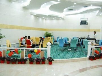It's a 4 star first class hotel in city center. Nov08 IL All rooms are medium in size, tidy with standard facilities. There are two restaurants serving Chinese cuisine. It's a modern white brick building with blue glass.